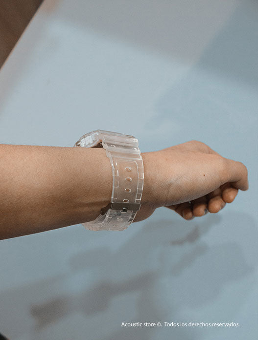 Reloj digital violeta transparente