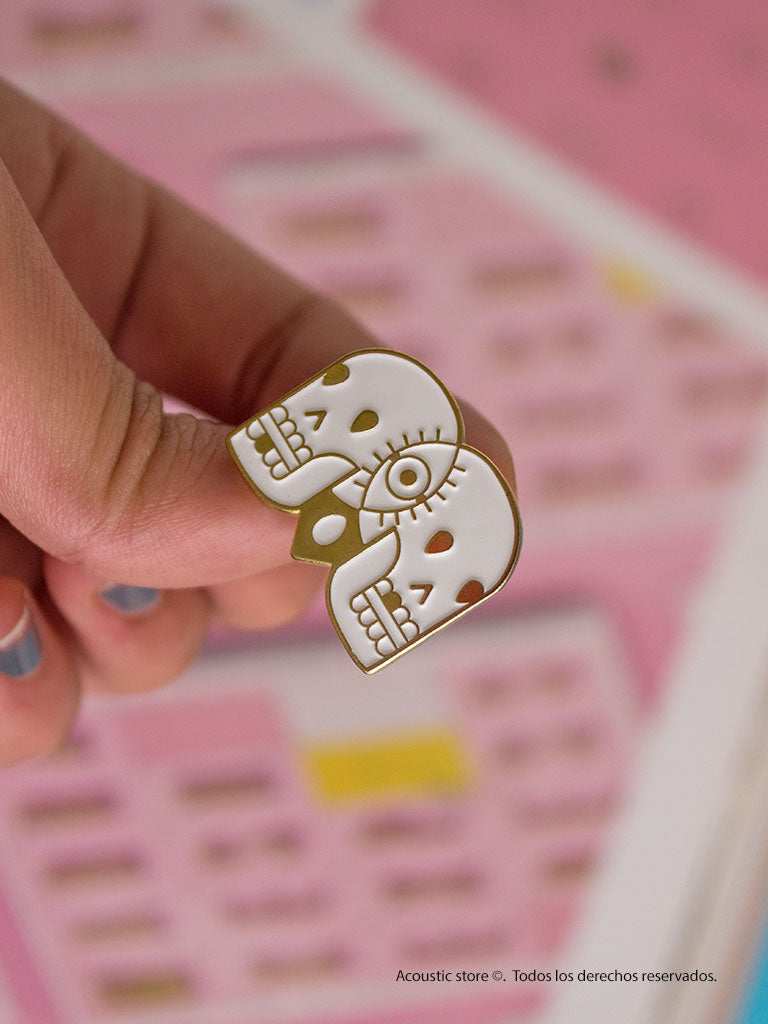 Perfectos para los amantes de lo misterioso y lo alternativo, nuestros pins de cráneo siamés son una declaración audaz y única.